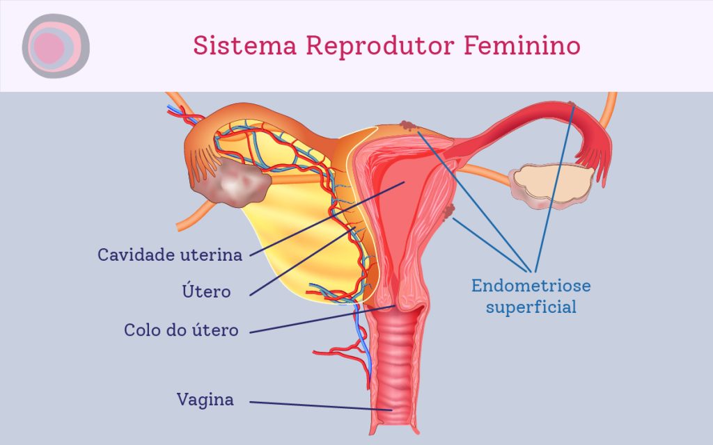 Uma das mais comuns e o quadro mais leve é a endometriose superficial. Nesse caso, os tecidos afetados pela infiltração do endométrio são as paredes abdominais e superfície dos órgãos pélvicos.